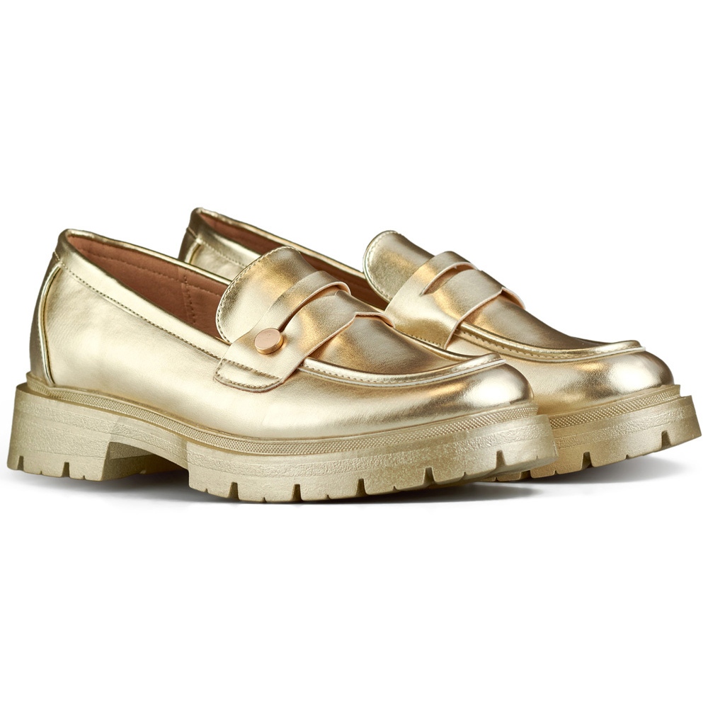 Lagane i praktične, zlatne cipele na gustom potplatu odličan su izbor koji će savršeno nadopuniti i svakodnevne i izlazne stililizacije. Njihovo originalno pakiranje marke dodatna je prednost, idealna za poklon ili za pohranu.