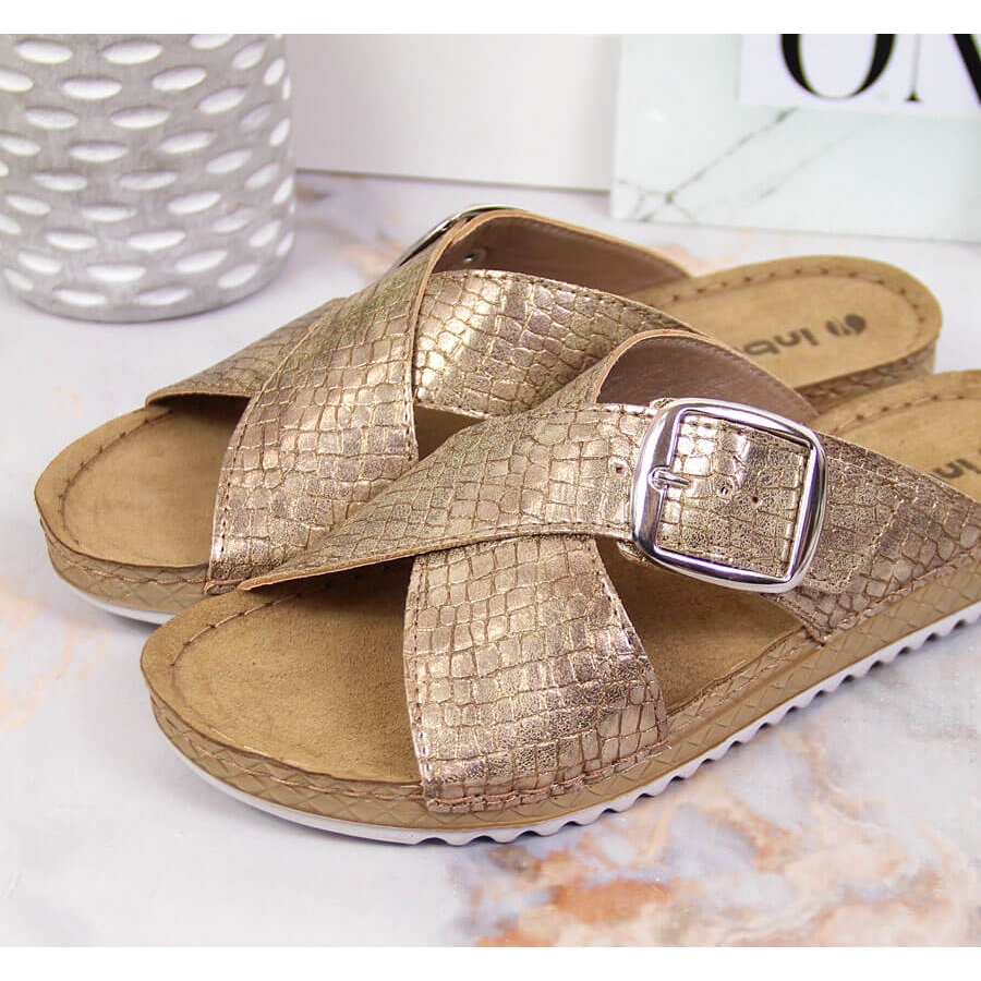 Pojedinosti: Ženske zlatne Inblu papuče s kopčom zlatni