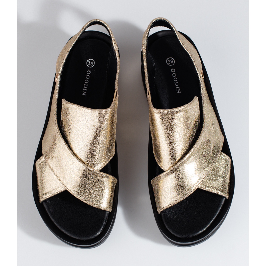 Otvorena peta pruža izvrsnu ventilaciju, što ih čini savršenim za tople dane u proljeće i ljeto. Izrađene od visokokvalitetne imitacije kože, izvana i iznutra sandale nude moderan izgled i udobnost nošenja. Osim toga, njihov klasičan kroj i zlatna boja savršeno ih nadopunjuju mnogim stilovima - od elegantnih haljina do ležernih hlača.