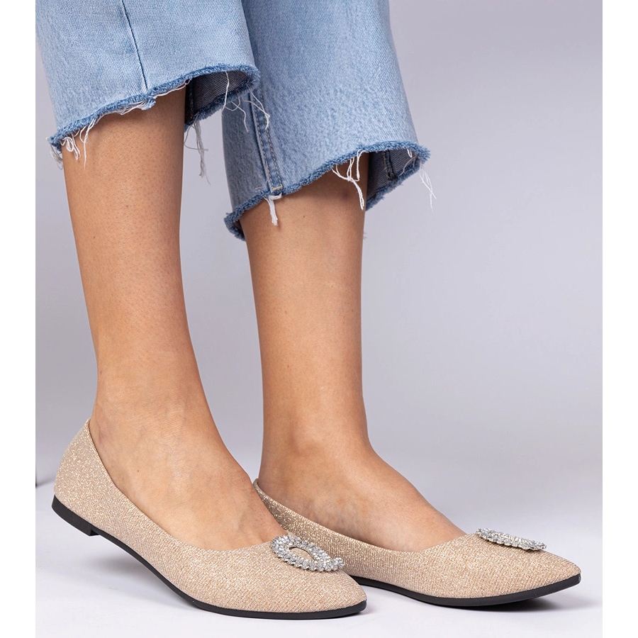 Ženski balerini šampanjca s cirkonima zlatni