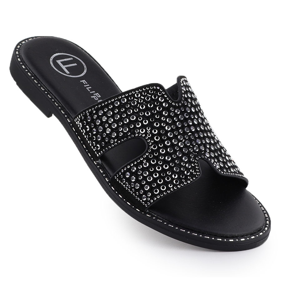 Ženski flip lete s rhinestones crni filippo dk6973 crna