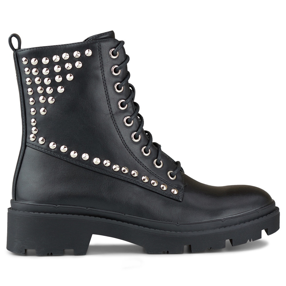 Ekspresivni, izdržljivi i udobni - ovi su rock radnici savršena kombinacija sirovog stila i svakodnevne udobnosti. Black Eco -leather, ukrasni mlaz i čvrsta platforma daju im karakter, a dvorac i vezanje osiguravaju savršeno uklapanje.