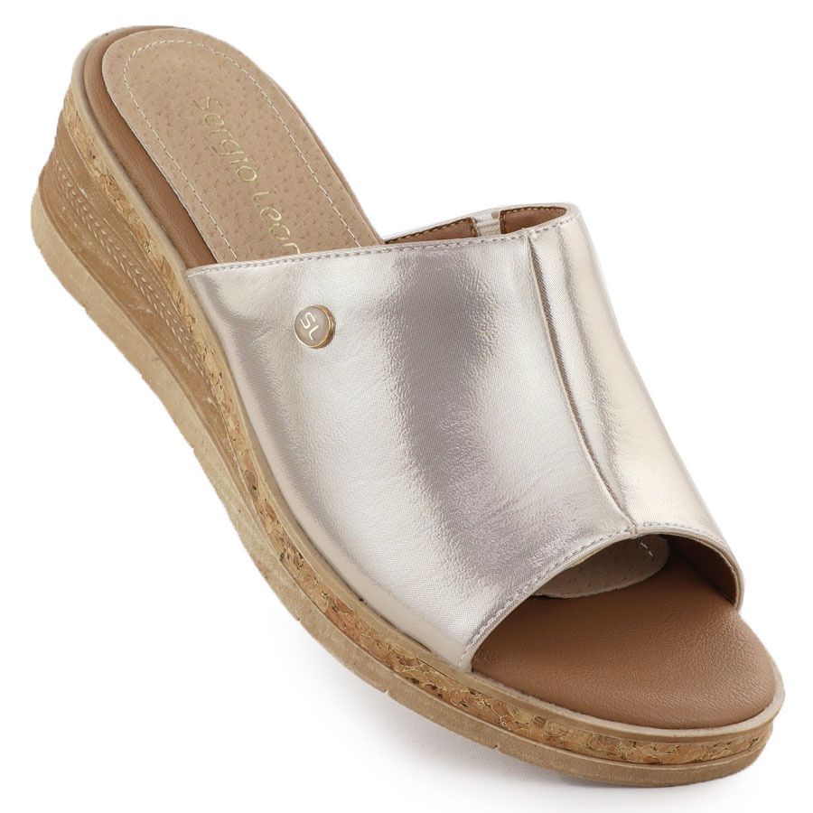 Ženski flip -flops sa zlatnim klinom poznatog branda Sergio Leone savršen je izbor za žene koje žele kombinirati eleganciju s svakodnevnim stilom. KL-191 model razlikuje se ne samo modernom, metalnom bojom, već i ekskluzivnim performansama najkvalitetnije ekološke kože. Zahvaljujući gornjem dijelu, što lijepo odražava svjetlost, ovi flip flops savršeno nadopunjuju svaku stilizaciju, dajući joj sjaj i stil.