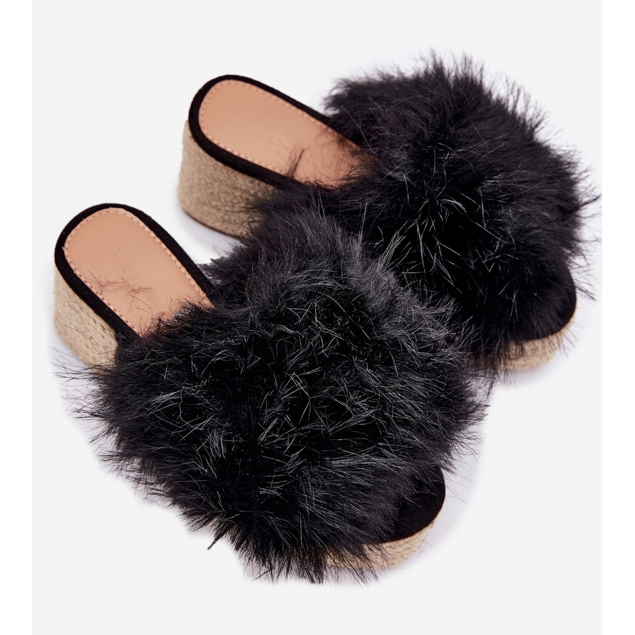 Pojedinosti: Ženski klip s klinom s krznom i pletenom crnom crna