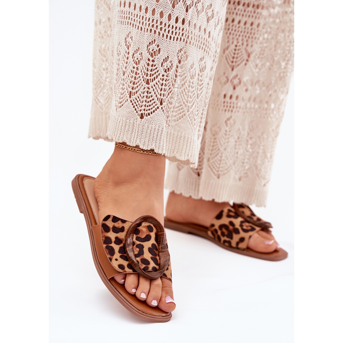 Pojedinosti: Ženski ravni okretni lepci s ukrasnom kopčama leoparda smeđa