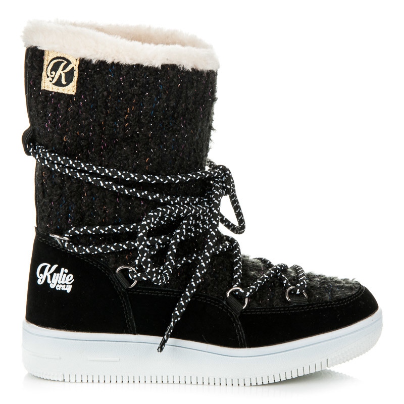 Kylie - Crne dječje zimske cipele s bijelim potplatom
