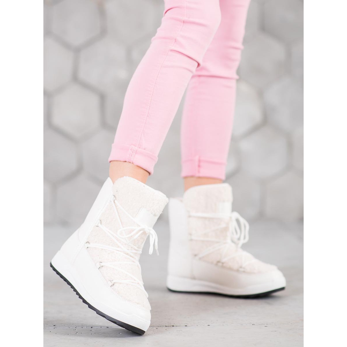 Zahvaljujući klasičnom, jednoličnom uzorku, naše bijele zimske čizme od ovčje kože bit će savršen dodatak svakoj garderobi. Osmišljene za sezonu jesen/zima, postale su neizostavan element modnog stila. Zajedno s originalnim pakiranjem proizvođača, ove cipele izvrstan su izbor za svaku modernu ženu. Obogatite svoju kolekciju ovim što morate imati!