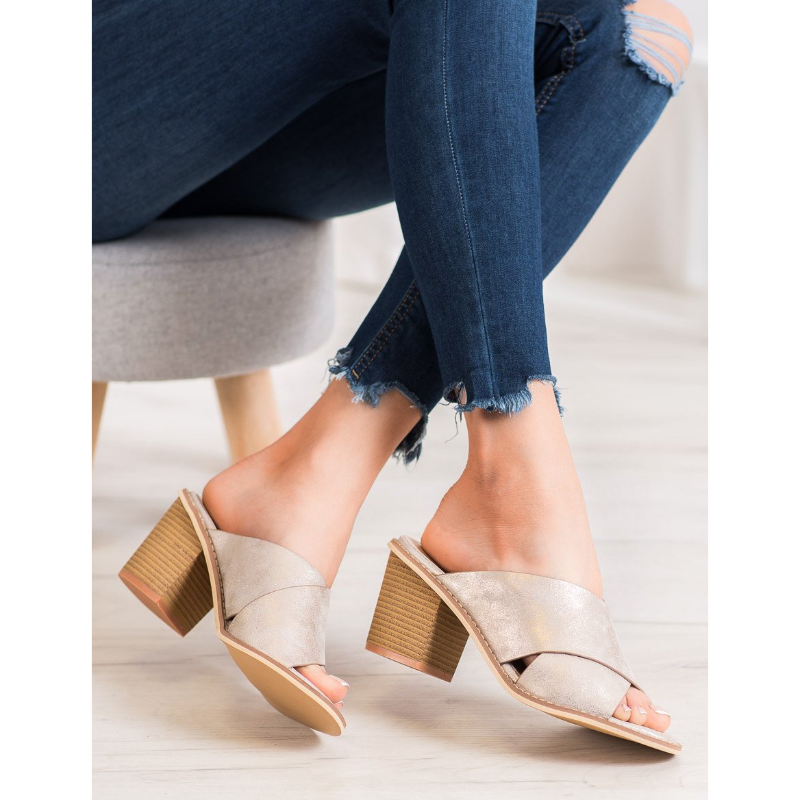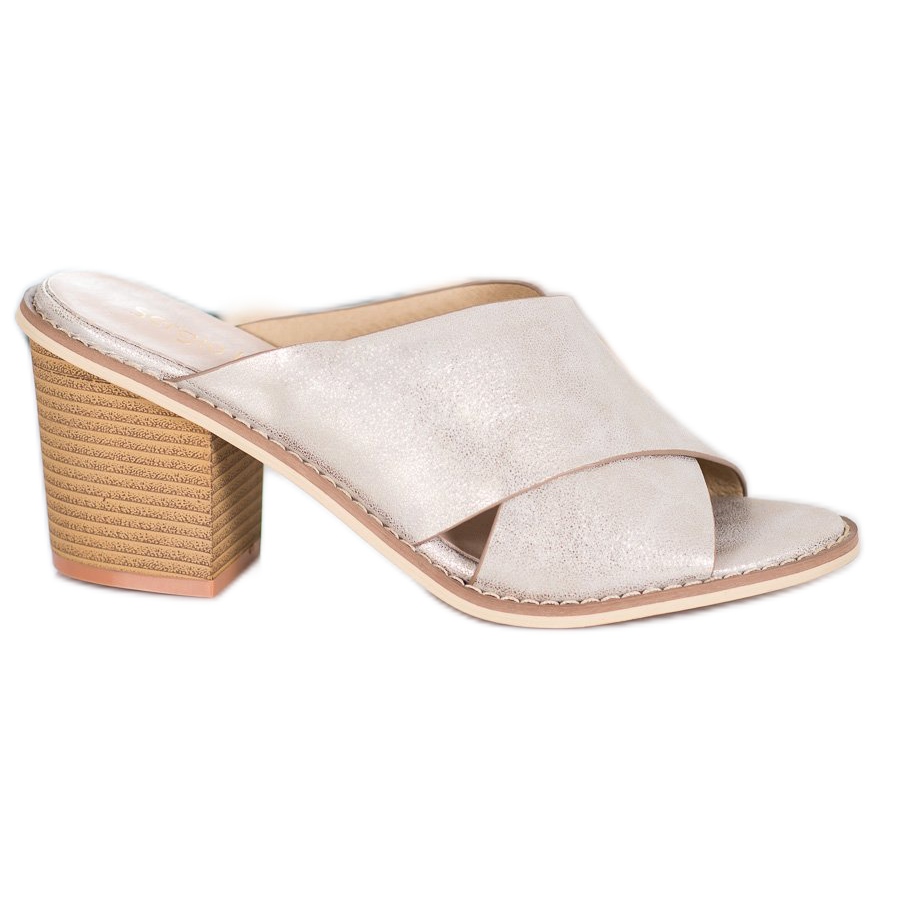 Predstavljamo elegantne Sergio Leone tobogane na visoku petu u zlatnoj boji - savršen izbor za žene koje žele spojiti udobnost i otmjenost! Ove moderne japanke izrađene su od visokokvalitetnog materijala nalik na kožu, zbog čega izgledaju odlično u svakom ljetnom stajlingu.