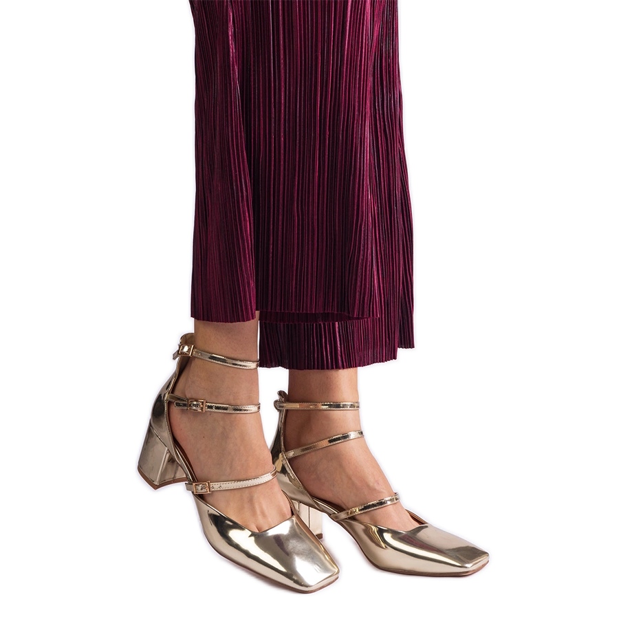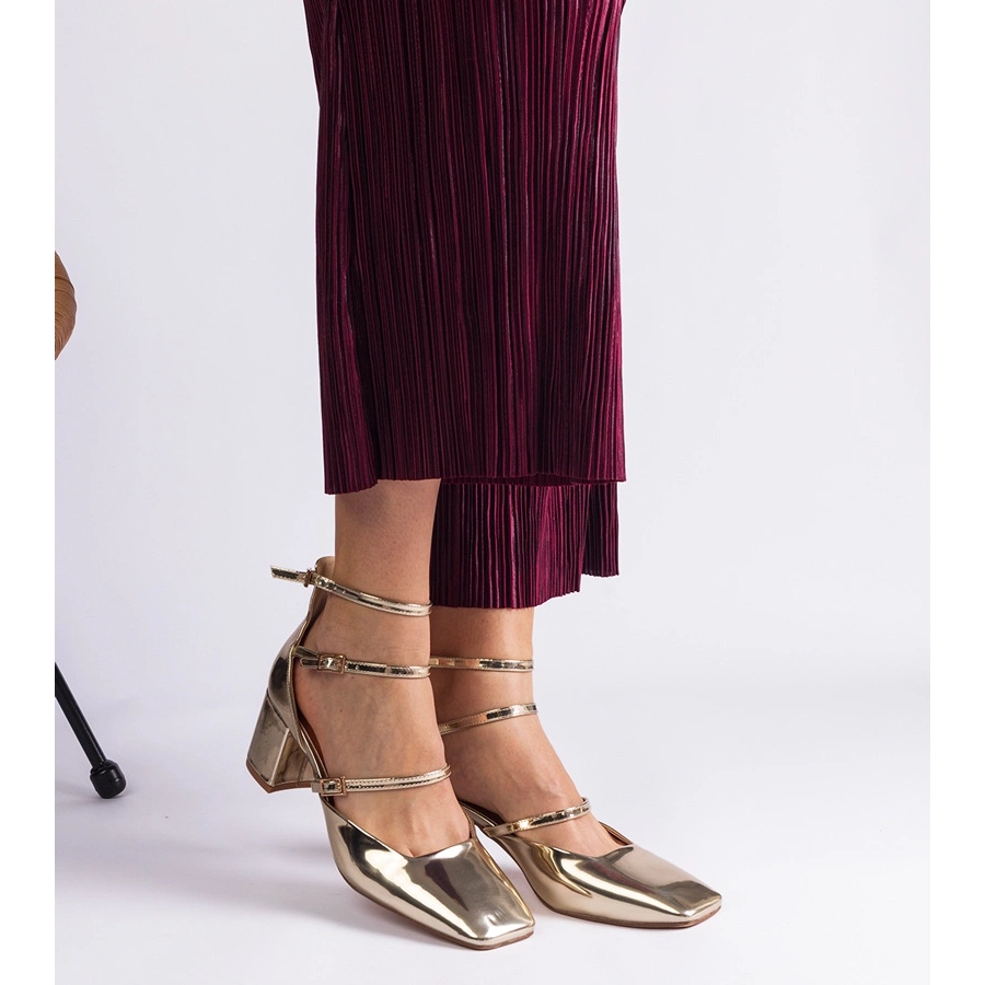 Pojedinosti: Zlatne pumpe lakirane na posta s kopčama zlatni