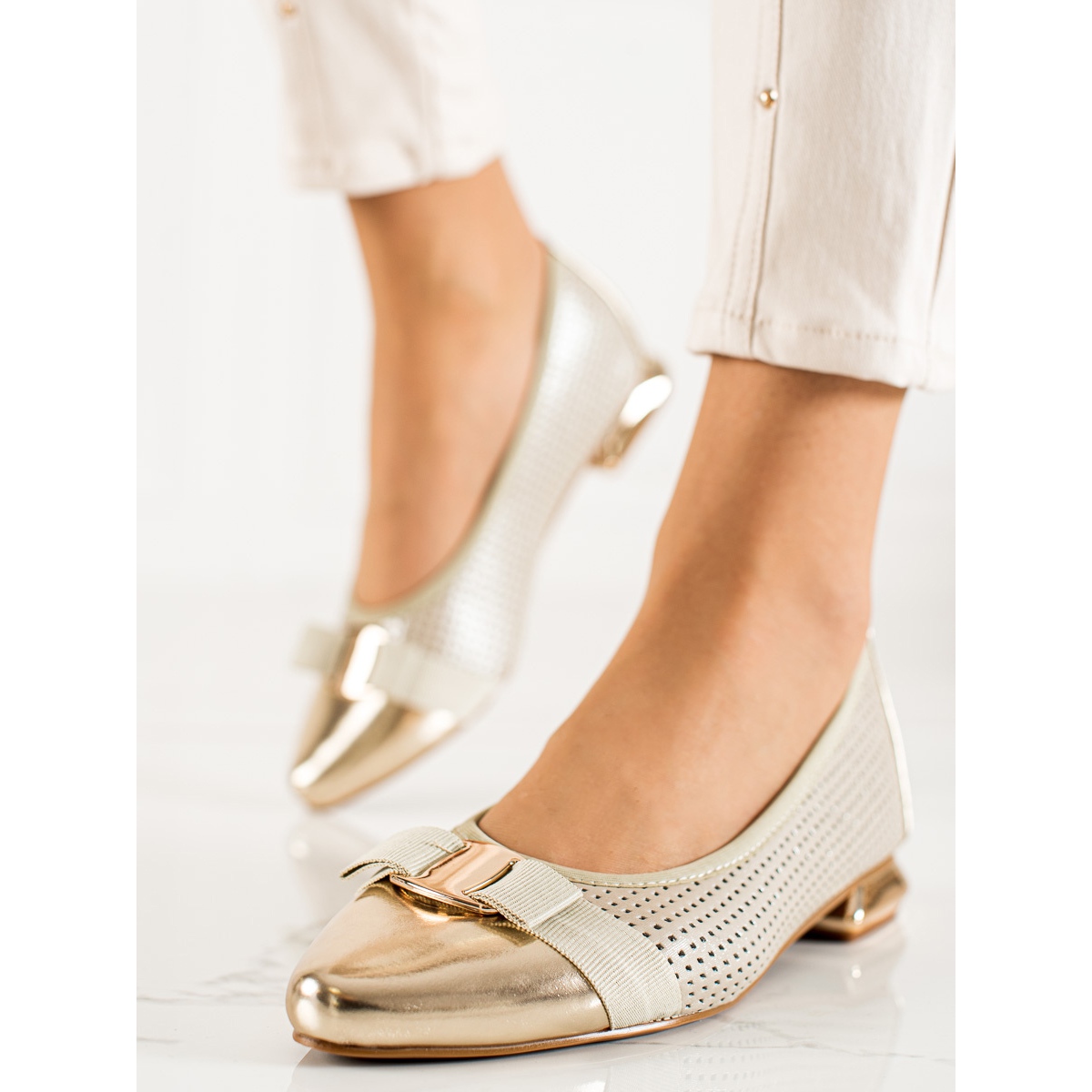 Unutar pumpi nalazi se kvalitetan umetak od prirodne kože koji pruža dodatnu udobnost i prozračnost, što je posebno važno u toplijim proljetnim i ljetnim mjesecima. Ove zlatne cipele W. Potocki savršen su izbor za modernu ženu koja cijeni modu i udobnost. Dodajte ih svojoj kolekciji i nećete požaliti!