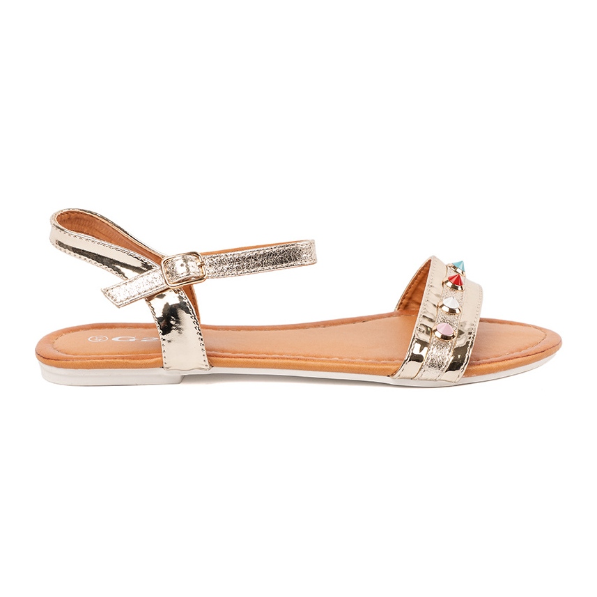 Pojedinosti: Zlatne ravne sandale sa šarenim klipovima zlatni