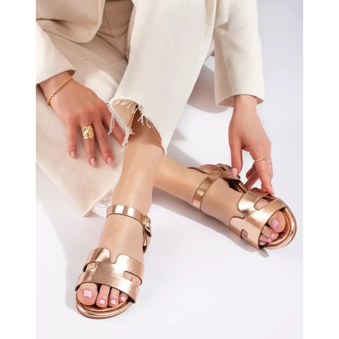 Sandale na ravnom potplatu Shelovet - zlato