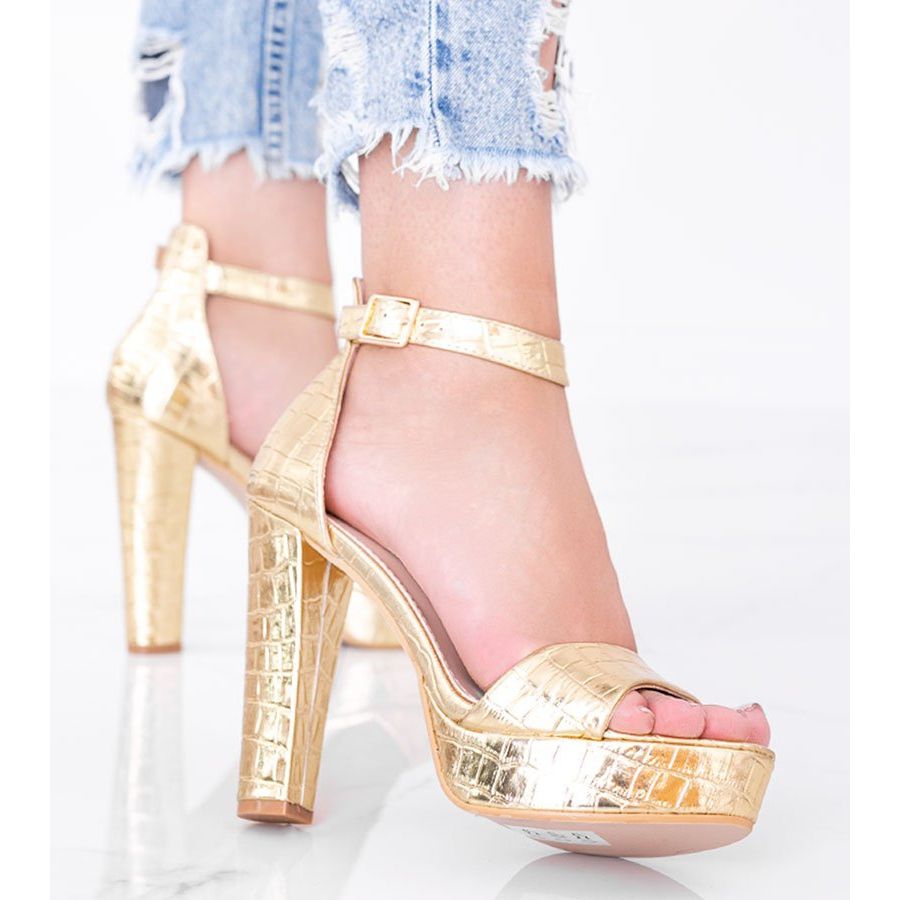 Zlatne sandale na stupu s motivom krokodilske kože Avila zlatni