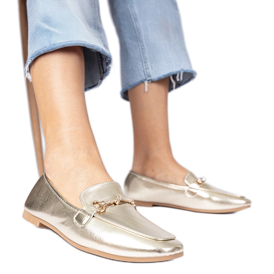 Upoznajte zlatne elegantne h8-562 loafers koji će vam dati sjaj vašem odjeći. Ove jedinstvene cipele s ukrasom cirkona i modernim kvadratnim nosom kombiniraju luksuz s svakodnevnom udobnosti. Savršeno za razne prigode, od formalnih sastanaka do izlaza vikenda, loaferi osiguravaju utjehu zahvaljujući ravnom peti s visinom od 1 cm.