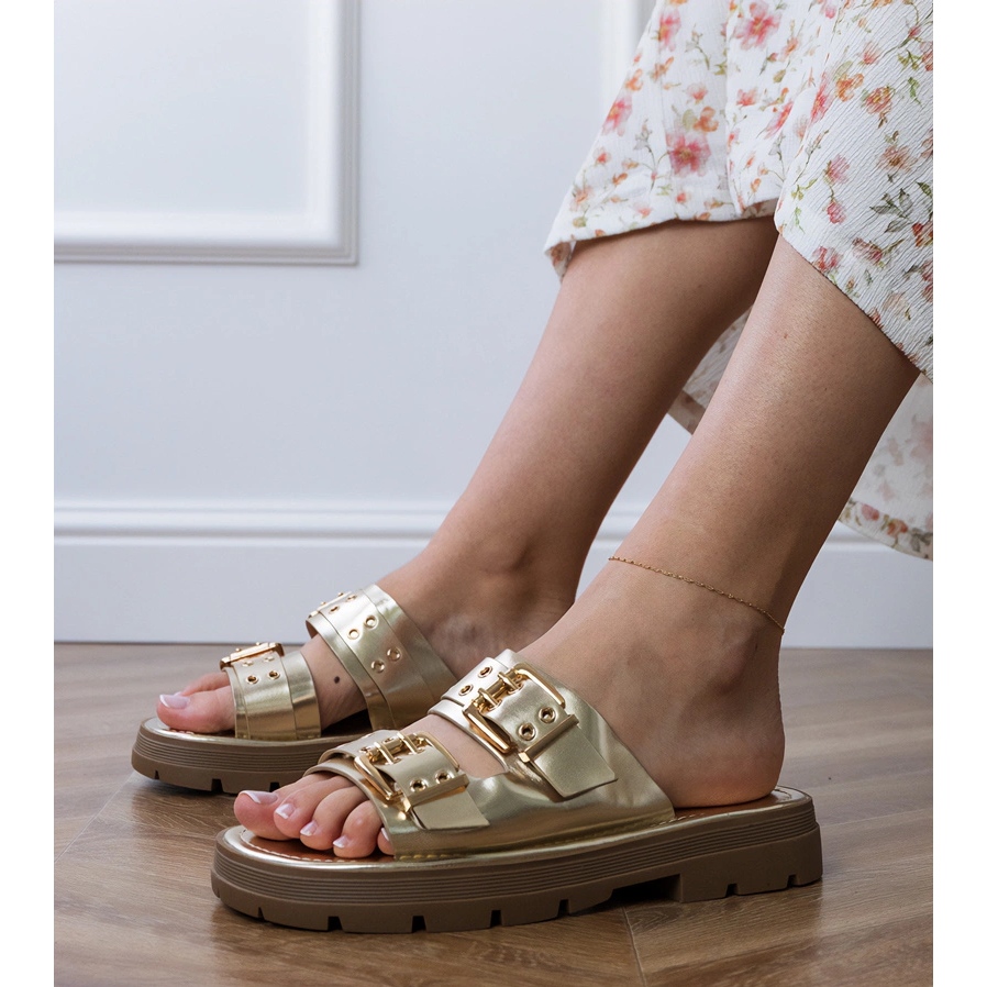 Evo zlatnih ravnih jastuka s prugama - odličan izbor za žene koje žele kombinirati eleganciju s svakodnevnom udobnosti. DFY-9 model, izrađen od visokokvalitetne ekološke kože, impresionira modernim dizajnom i funkcionalnošću. Njihova zlatna boja uvest će malo sjaja u svaku ljetnu stilizaciju, savršeno usklađujući s ležernim i formalnijim odijelima.