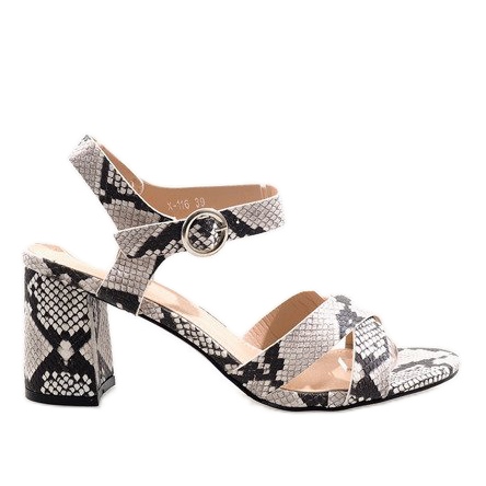 Izrađene od materijala nalik na kožu, sandale oduševljavaju printom zmije, dodajući notu životinjskog stila svakom stajlingu. Zahvaljujući kopčanju na kopču, obuća savršeno pristaje uz nogu, osiguravajući udobnost nošenja tijekom cijelog dana. Klasičan dizajn s petom visokom 8 cm čini sandale ne samo elegantnim, već i udobnim - savršen izbor za ljetne večeri ili ljetne zabave.