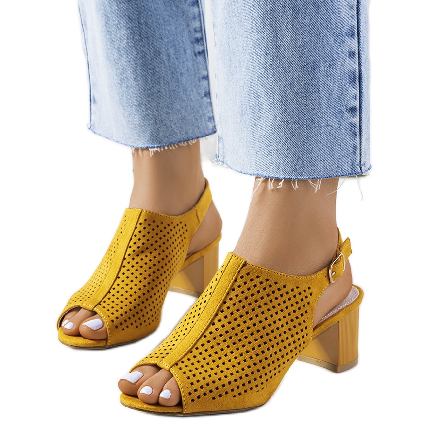 Pojedinosti: Žute ažurne sandale na kolčiću Belinda žuta boja